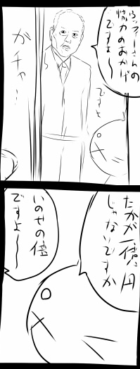 ウッフィーから何かを受け取り、「いのせの倍」らしい舛添氏。 これは都知事になってからの豪遊を予言していたのだろうか 登場回: http://ctrly.blog14.fc2.com/blog-entry-3568.html